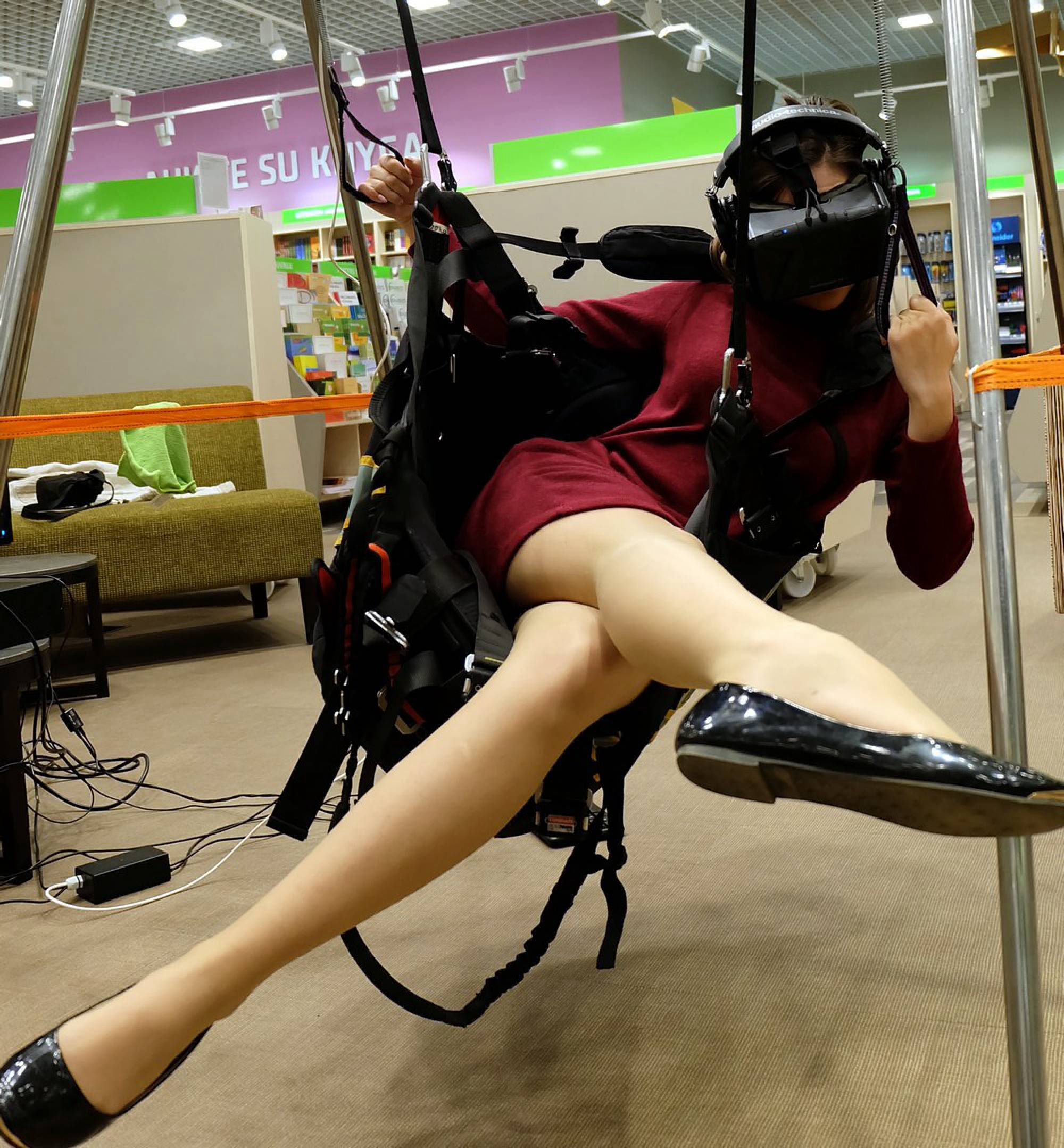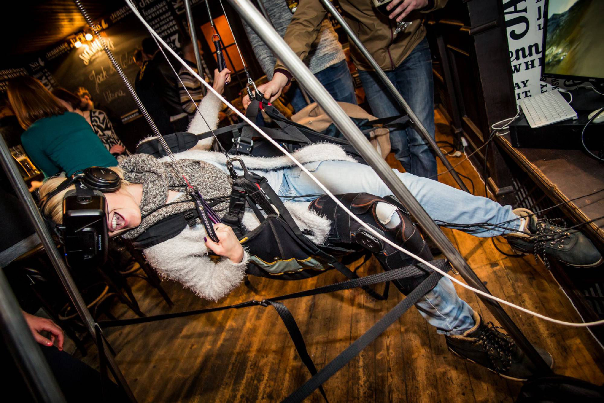 Parasparnis valdomas kūno svorio permetimu į šonus ir klevantomis, aplinkiniai skrydį mato ekrane, o pilotas - VR akiniuose. Ausinėse girdimas vėjo ir esant kylančioms šilto oro srovėms variometro garsas. Imituojamas vėjas, susidarantis dėl skridimo greičio.