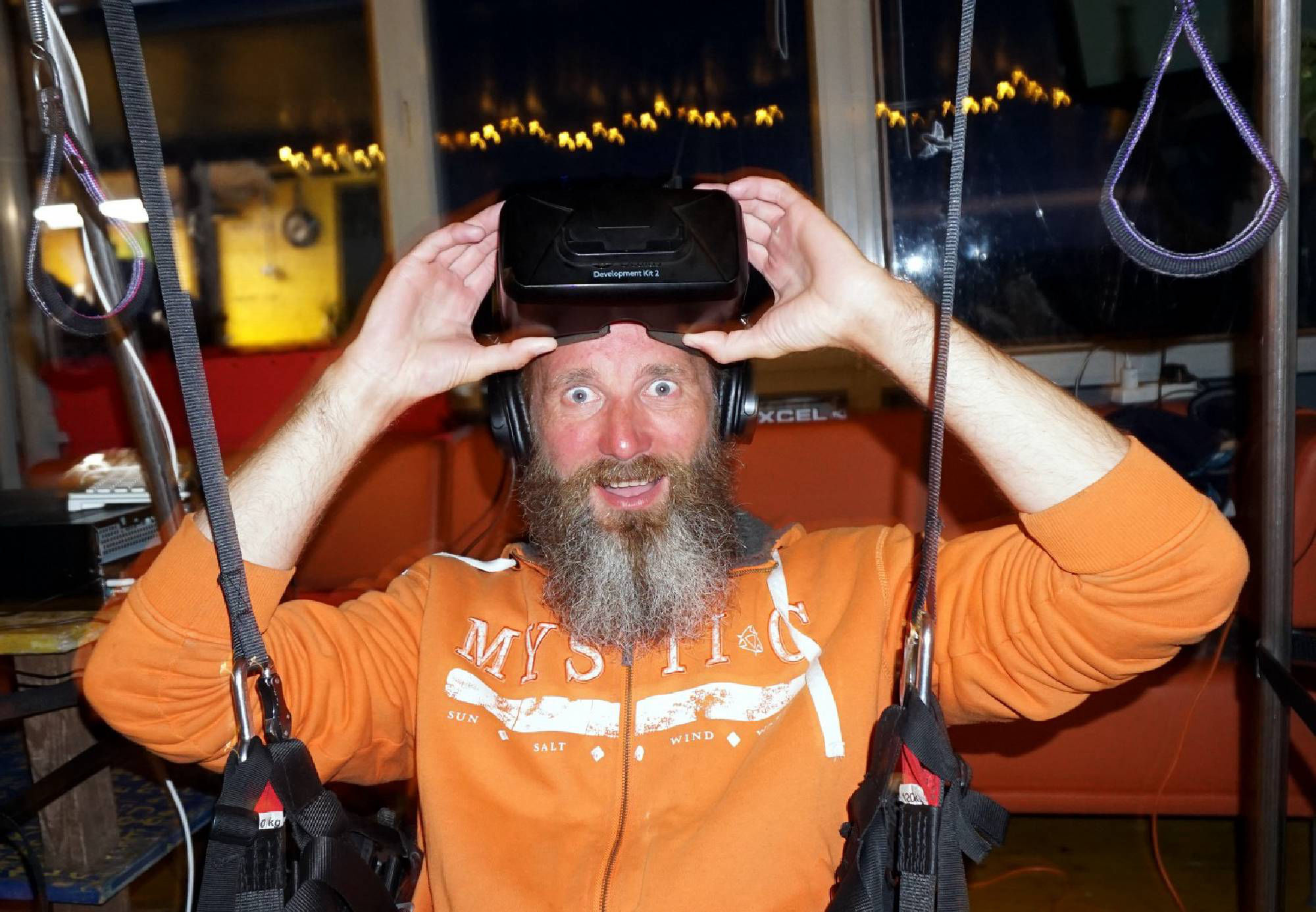 Virtualaus skrydžio parasparniu techninę ir programinę įrangą sukūrėme patys, tad galime teigti, kad tai ganėtinai unikali pramoga ar edukacija.